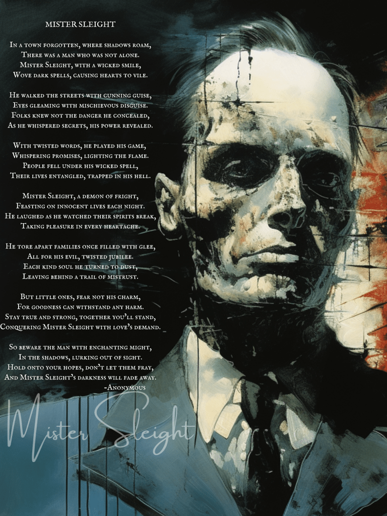 Here is a peek at a poem I recently compiled to place within the pages of When the Devil Takes Hold. Mister Sleight will grace the pages himself in all his disgusting glory. Stay tuned.
